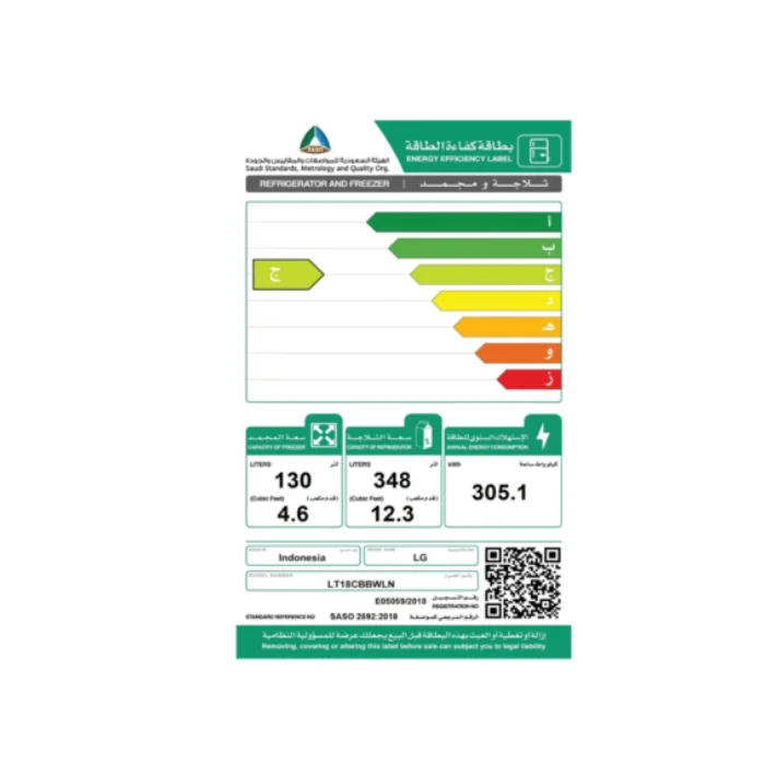 - سعة الثلاجة : 348 لتر