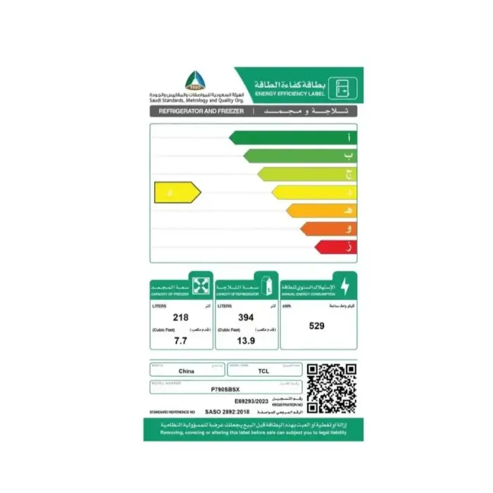 - الإستهلاك المسنوي للطاقة : 529 كيلو واط لكل ساعة