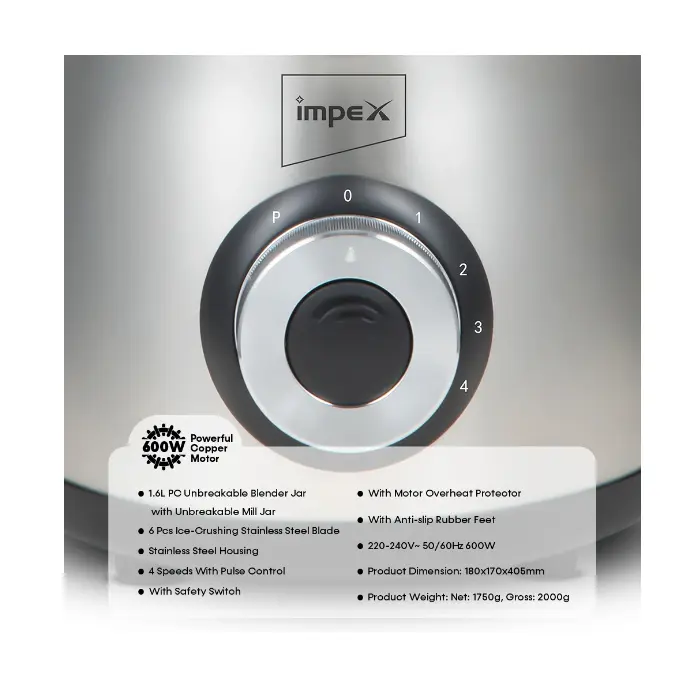 يتسم خلاط امبكس مع مطحنة 2*1 – 600 وات – ستيل لخلط كميه كبيرة من الخضروات و الفواكه كما أنها تستخدم لخلط جميع المكونات في وقت واحد بالإضافة الى سرعة الخلط و يتعامل مع جميع المكونات حتى الكثيفة منها بسهولة و يسر و ضمان تجانس قوى للمكونات بفضل قوة شفرات عالية الجودة تطحن التوابل والمكسرات في دقيقة و تخلط المكونات بشكل مثالي .