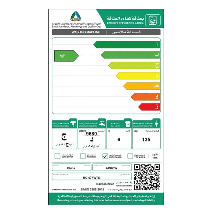 - موفرة للطاقة والمياه باستهلاك سنوي 135 كيلو وات/ساعة