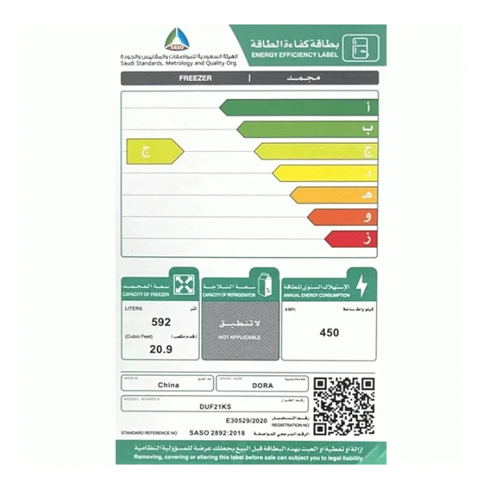 يمتلك فريزر رأسى 21 قدم دورا سعة تخزين واسعة تكفي لجميع احتياجاتك المنزلية أو حتى لمتاجر صغيرة. التصميم الداخلي الذكي يسمح لك بتنظيم المنتجات بشكل مرتب، مع رفوف ومساحات مخصصة لتسهيل وضع وتفريغ الأطعمة. المساحة الكبيرة تمنحك حرية تخزين كميات كبيرة من الطعام دون ازدحام، كما تساعدك على الوصول السريع لكل ما تحتاجينه بسهولة، مما يجعل عملية التخزين أكثر فعالية وراحة.
