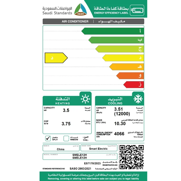 مكيف سبليت سمارت اليكتريك 12 الف وحدة – حار/بارد SMELE12H