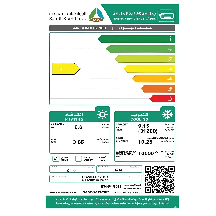 يندرج مكيف سبليت هاس 31200 وحدة ضمن نطاق توفير الطاقة حيث يتيح للمستخدم تقليل استهلاك الطاقة بنسبة 12.20% عند الاستخدام المتواصل يمكن للمستخدم من خلال هذا الأداء الفعال ترشيد استهلاك الطاقة وبالتالي تحقيق توفير في التكاليف المالية