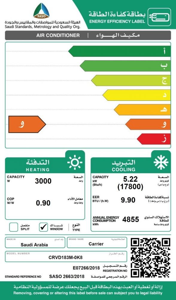 خصائص مكيف كارير شباك عملاق 17800 وحدة – حار / بارد :