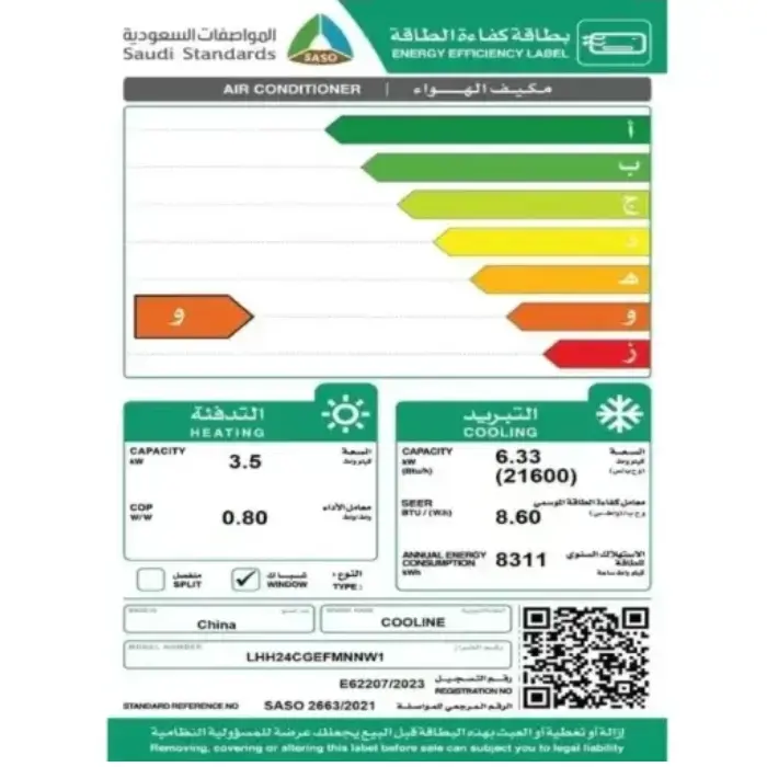 مكيف هواء شباك كول لاين 21600 وحدة – روتاري – حار وبارد LHH24CGEFMNNW1