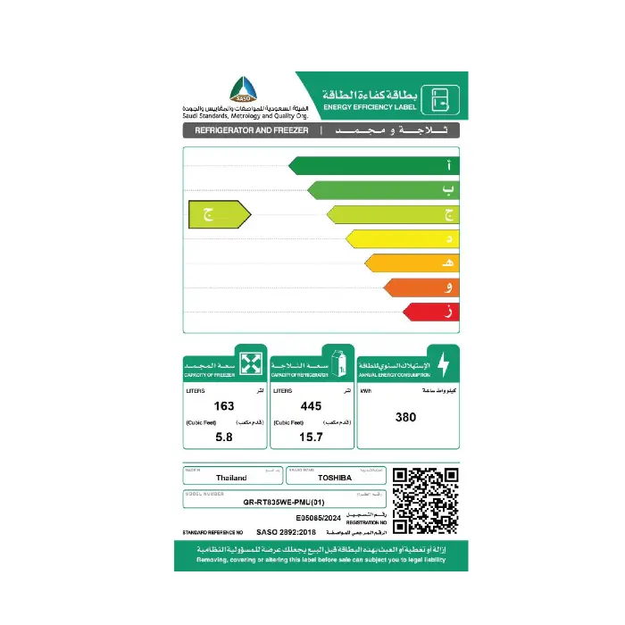 ثلاجة بابين توشيبا 21 قدم انفرتر – أبيض GR-RT835WE-PMU(01)