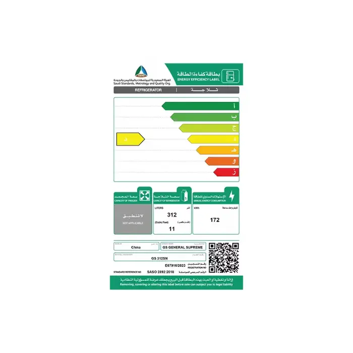 تعتمد ثلاجة جنرال سوبريم على غاز التبريد R600a المعروف بكفاءته العالية في التبريد واستهلاكه المنخفض للطاقة، بالإضافة إلى كونه خيارًا صديقًا للبيئة. هذا النوع من الغاز يساهم في تقليل الانبعاثات الضارة، ما يجعل الثلاجة اختيارًا مسؤولًا ومستدامًا.