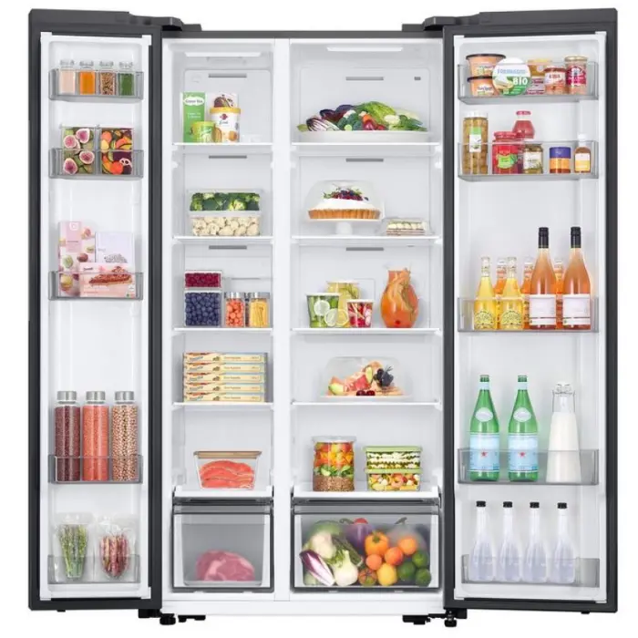 تصميم الدولاب المزدوج Side by Side يمنحك مظهرًا عصريًا وأنيقًا للمطبخ، مع تنظيم عملي للفريزر والثلاجة بحيث يسهل الوصول إلى كل قسم دون الحاجة إلى الانحناء أو البحث عن العناصر داخل الثلاجة.