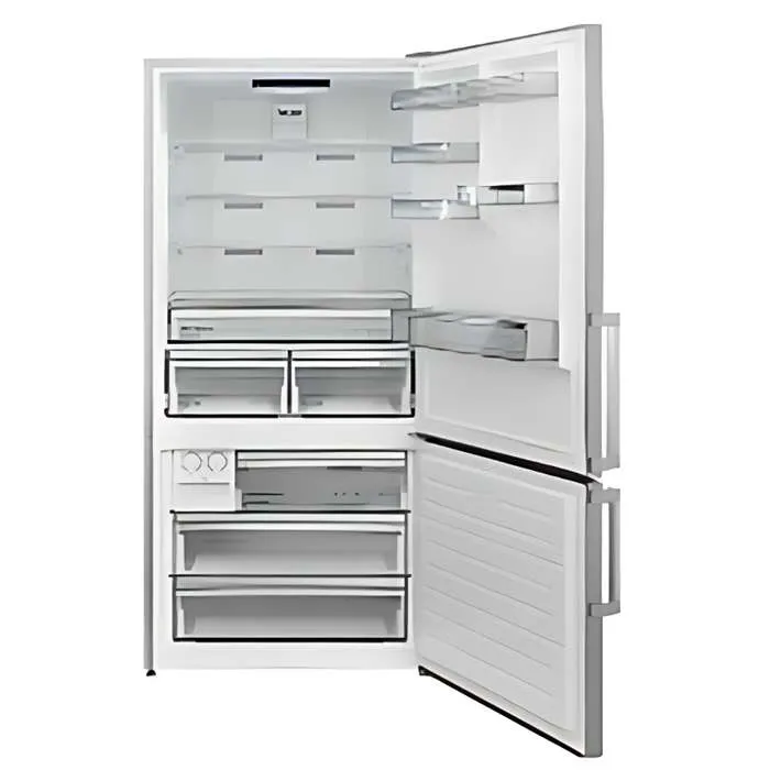 يأتي الفريزر في الجزء السفلي من الثلاجة ليمنحك راحة أكبر في الاستخدام اليومي، حيث تكون الأطعمة الأكثر استخدامًا في مستوى النظر دون الحاجة للانحناء المتكرر. هذا التصميم العملي يساعد على تنظيم أفضل للمجمدات، ويوفر سهولة الوصول إليها مع الحفاظ على كفاءة التبريد وتوزيع الهواء بشكل متوازن.