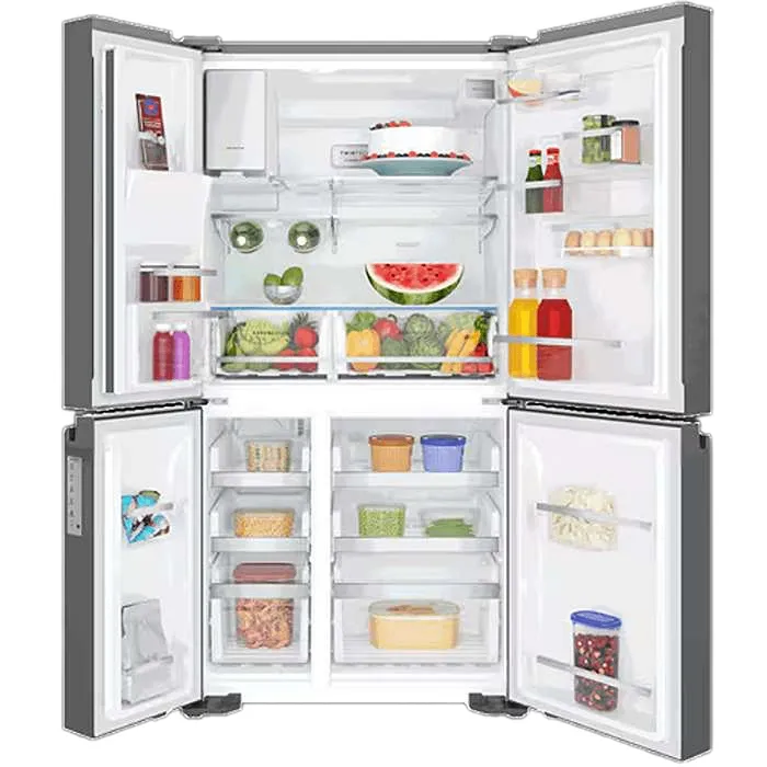 - تصميم دولابي 4 أبواب يوفّر تنظيم مثالي وفصل واضح بين التبريد والتجميد.