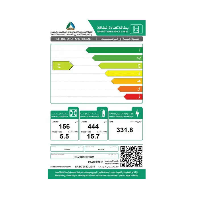 تتمتع ثلاجة هيتاشي بقفل أمان للأطفال، يمنع فتح الباب بطريقة غير مقصودة، ويقلل من المخاطر الناتجة عن العبث أو التلف الغذائي. هذه الميزة مهمة بشكل خاص في المنازل التي تحتوي على أطفال صغار، وتضيف طبقة أمان إضافية لك ولأسرتك.