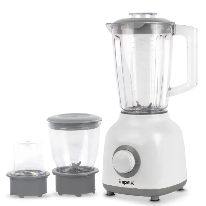خلاط كهربائي إمبكس يحتوي علي دورق بسعة كبيرة تكفي لعمل عصائر لجميع العائلة في وقت واحد كما يتميز الدورق بأنه مصنوع من البلاستيك القوي المقاوم للصدامات والبهتان .