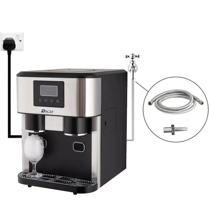 يمكنك تشغيل صانع الثلج اوسكار بالطريقة التقليدية عن طريق تعبئة الخزان يدويًا، أو توصيله مباشرة بمصدر المياه للتشغيل التلقائي المستمر. هذه المرونة تجعل الجهاز مناسبًا لمختلف البيئات المنزلية أو المكتبية، حسب احتياجاتك اليومية.