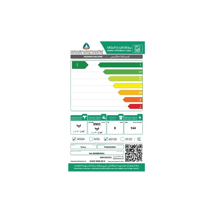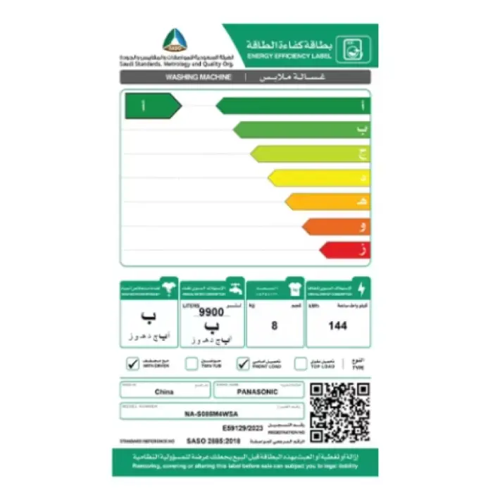 غسالة اتوماتيك باناسونيك 8 كيلو أمامية – إنفرتر – أبيض NA-S086M4WSA