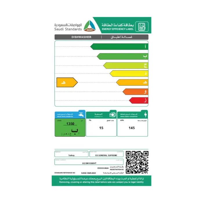 الوسوم: غسالة جنرال سوبريم, غسالة صحون, غسالة صحون 15 مكان