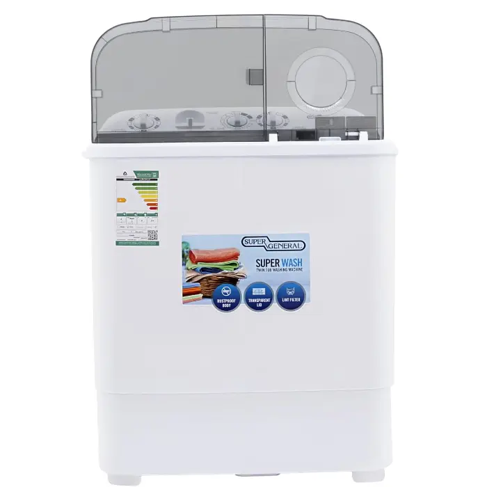 تحتوي غسالة سوبر جنرال حوضين 9 كيلو – أبيض على مراوح تعمل بقوة عالية حيث تقوم بإزالة أصعب البقع بسرعة عاليه لتحافظ على الملابس والأقمشه بطريقة ذكيه مما يجعلها ذات كفاءة عاليه كما انها ذات تصميم جميل ومميز.