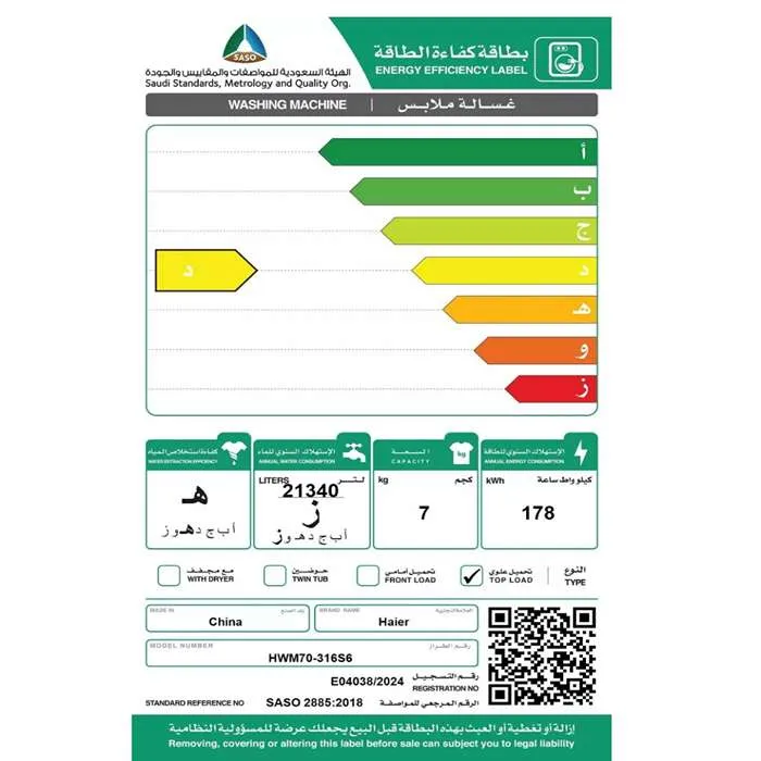 غسالة هاير7 كيلو مزودة بنظام Anti‑bacteria Pulsator الذي يمنع نمو البكتيريا داخل الغسالة أثناء الغسيل. هذا النظام يحافظ على الملابس نظيفة وصحية، ويقلل من المخاطر الصحية الناتجة عن تراكم الجراثيم داخل الأسطوانة، ما يضمن حماية الملابس والأسرة.