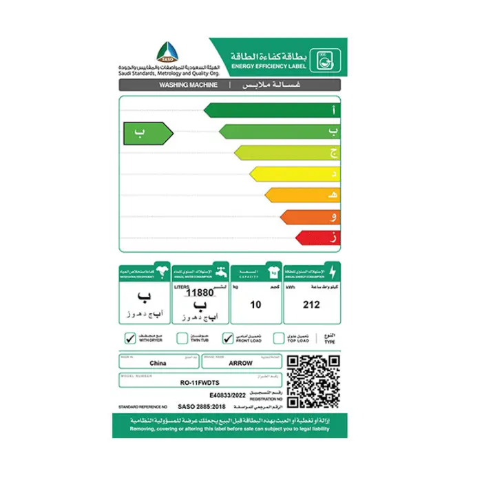 - معدل الإستهلاك السنوي للطاقة ( 213 كيلو وات/ساعة )