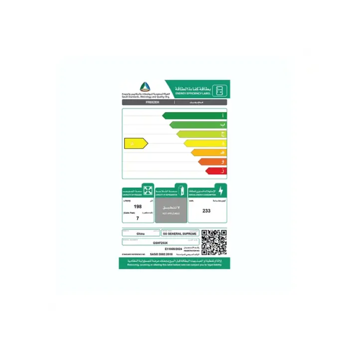 تساعد الإضاءة الداخلية في رؤية المحتوى داخل فريزر افقي جنرال سوبريم بوضوح حتى في الإضاءة الضعيفة، مما يسهّل عملية البحث عن المنتجات المخزنة. كما يتميز باستهلاك اقتصادي للكهرباء بفضل كفاءته العالية. مما يضمن تشغيلًا اقتصاديًا يقلل من استهلاك الكهرباء ويوفر في فاتورة الطاقة، مع الحفاظ على أداء تبريد قوي ومستمر