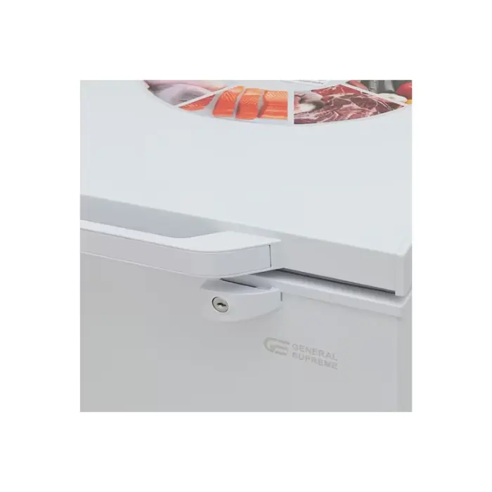 فريزر افقي جنرال سوبريم يحتوي على قفل مدمج في الغطاء العلوي، ما يساعد على حماية المحتويات من عبث الأطفال أو الوصول غير المرغوب فيه.