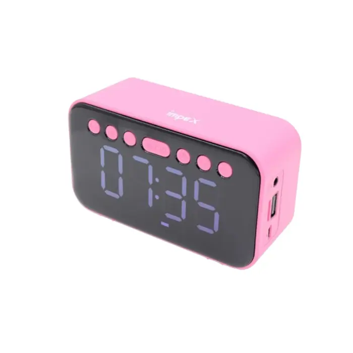 يتميز مكبر الصوت امبكس مع ساعة ديجيتال 3 وات – وردي بتصميم جذاب مع لمسة نهائية لامعة و أنيقة بلون وردي تمتزج بشكل جميل مع التصميمات الداخلية الحديثة لغرفة المعيشة الخاصة بك ، كما انه مزود بشاشة رقمية تعمل كساعة وأيضا مدمج به وظيفة منبه لإيقاظك وقتما تشاء.
