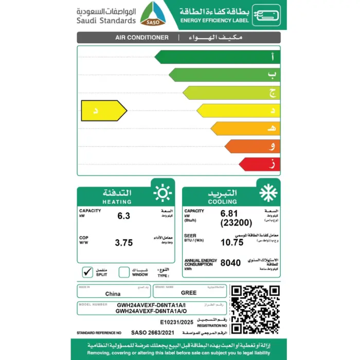 الصنفمكيف جري اي ماكس سبليت 23200 وحدة – حار بارد