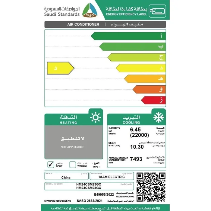 مكيف سبليت هام الذهبي 22 ألف وحدة – بارد Hm24csm23go