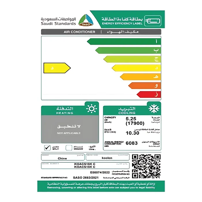 مكيف سبليت 17900 وحدة كولن – بارد – ابيض koacs18k c
