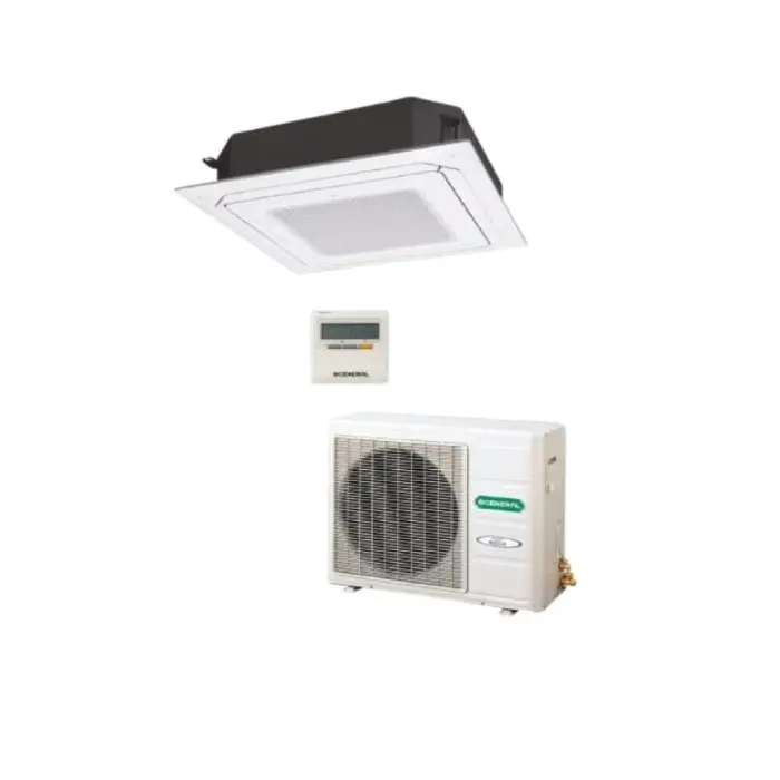يتميز مكيف سقف كاسيت أوجنرال بتصميم عملي مخصص للأسقف المستعارة حيث يتم تركيبه بشكل أنيق يندمج بسلاسة مع ديكور المكان دون التأثير على المساحة الداخلية كما يتيح هذا التصميم توزيعًا مخفيًا وفعالًا للهواء من السقف مما يمنح مظهرًا عصريًا ونظيفًا مع أداء تبريد وتدفئة مثالي يناسب مختلف البيئات مثل المكاتب والمحلات والمنازل.