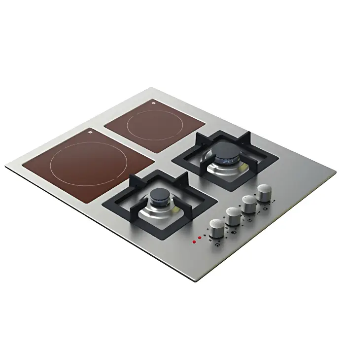 - سطح طهي مزدوج يجمع بين الغاز والكهرباء.